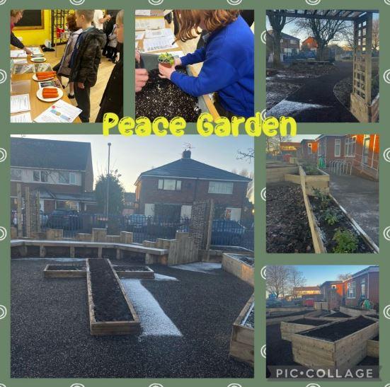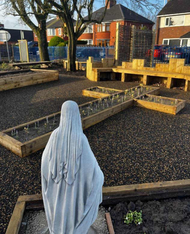 We know that we are stewards of God's creation and it is our responsibility to respond to environmental issues.  During the Spring Term 2024, our Peace Garden was completed.  Some of our GIFT team members who are part of the Laudato Si' team attended a Let's Get Growing event to find out about gardening and how to bring wildlife to our garden.  We were donated lots of plants, seeds and compost to get us started!