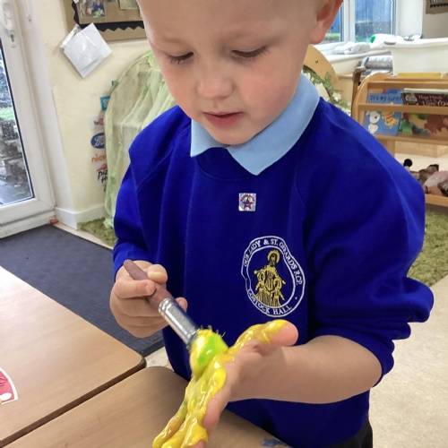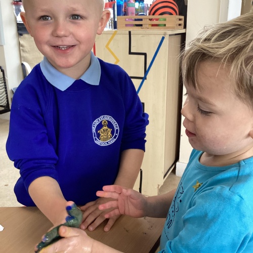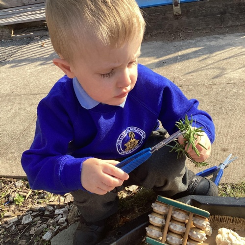 At Our Lady and St Gerard’s we have a welcoming, nurturing and calm nursery classroom, where all the activities are easily accessible for our children. Our children are very independent and are able to choose activities and move around the classroom when they please. Within our setting, the children have access to both indoor and outdoor learning, offering endless possibilities throughout the range of different areas of learning. This can sometimes mean that they can come home wet and muddy – 'More mess, more fun' we say!